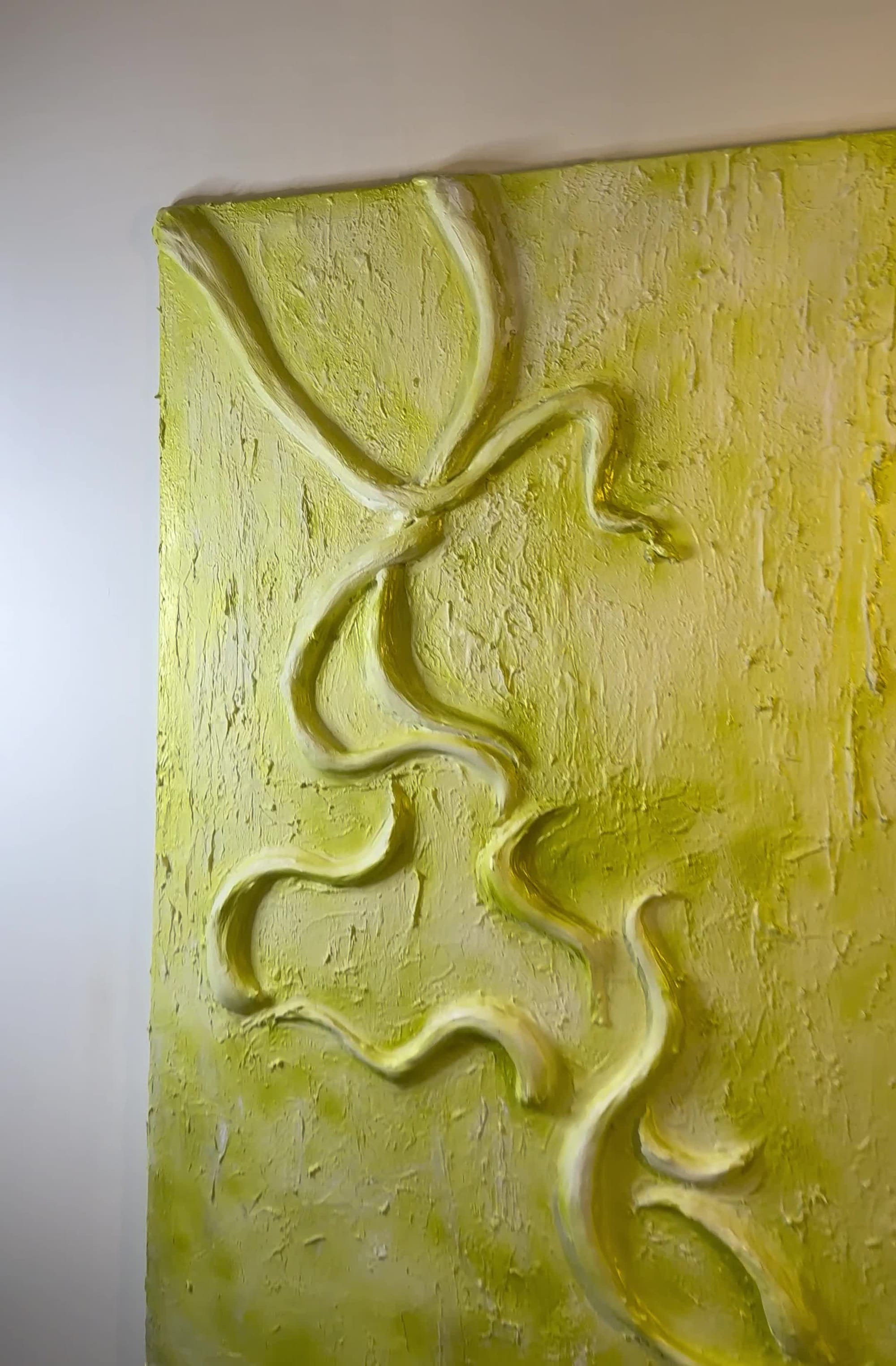 Natali Valianou, is a contemporary artist based in Athens, Greece. Her practice can be described as “sculptures on canvas” due to the dominant forms and textures that she is applying to her artworks. Gold leaves, fabrics, acrylics and glue, are some of the main materials that compose her minimalistic creations.Traces of her studies on clinical phychology are being depicted in her work, as she conveys brain waves, reaction patterns and other elements of social behaviour into shapes, colours and textures.